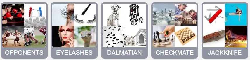 Look closely at what the pictures have in common and count the letters shown in the clue area to match a 9-letter word.